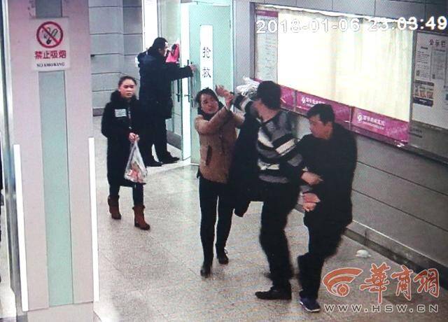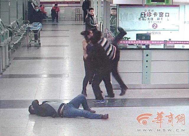 1月6日晚10时46分左右,3男2女从出租车上下来,一起进了西安市太华路上的唐城医院急诊大厅,3名男子身上都充满酒味。到大厅后,一男子直接就倒在了地上,同伴赶紧蹲下来照看。另外一名男子则继续往前走,前往急诊科,然后一把推开了抢救室的门,“你们医生都死到哪儿去了?”华商网 图